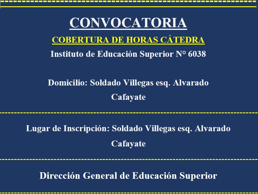CONVOCATORIA PARA LA COBERTURA DE HS CÁTEDRA IES 6038 DE CAFAYATE