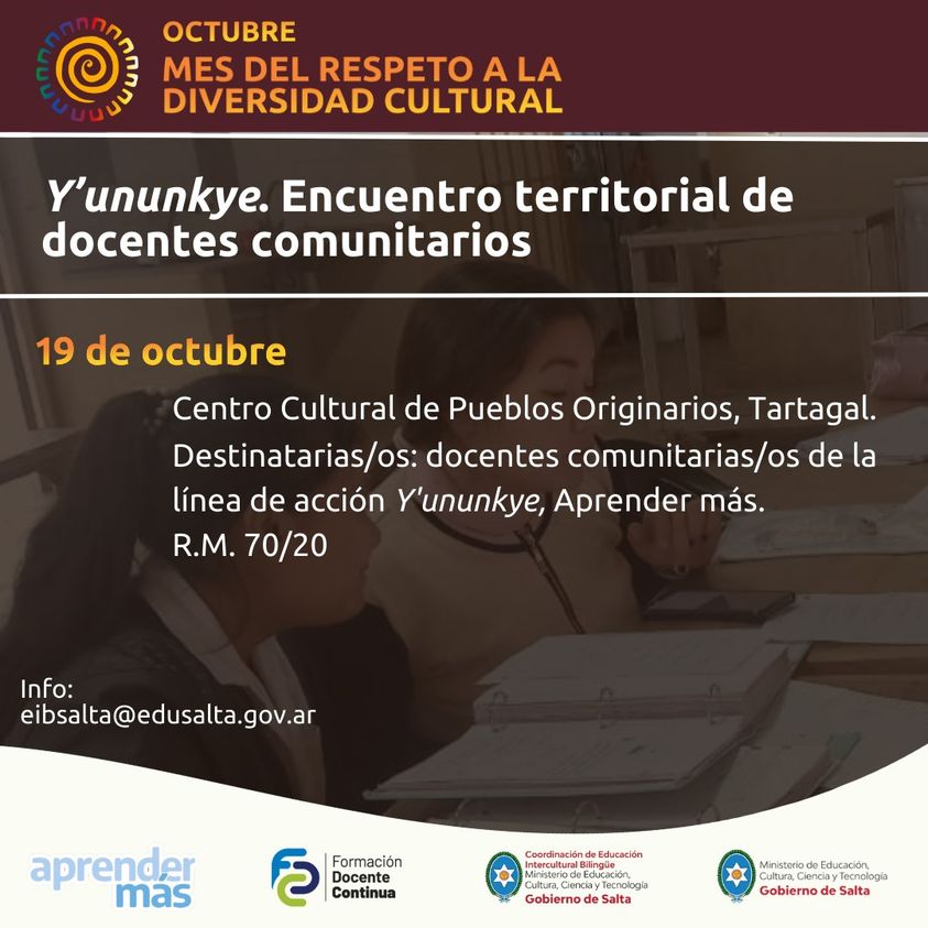 El día 19 de octubre se llevará a cabo el 𝘌𝘯𝘤𝘶𝘦𝘯𝘵𝘳𝘰 𝘵𝘦𝘳𝘳𝘪𝘵𝘰𝘳𝘪𝘢𝘭 𝘥𝘦 𝘥𝘰𝘤𝘦𝘯𝘵𝘦𝘴 𝘤𝘰𝘮𝘶𝘯𝘪𝘵𝘢𝘳𝘪𝘢𝘴/𝘰𝘴 de la línea de acción 𝘠’𝘶𝘯𝘶𝘯𝘬𝘺𝘦. Aprender más: espacios socioeducativos interculturales de acompañamiento a las trayectorias escolares en los departamentos Gral. José de San Martín, Rivadavia y San Ramón de la Nueva Orán. El Encuentro tiene por objetivo desarrollar unaSigue leyendo «Y´UNUNKYE: ENCUENTRO TERRITORIAL DE DOCENTES COMUNITARIOS EN TARTAGAL»