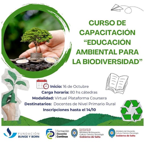El Ministerio de Educación, Cultura, Ciencia y Tecnología de Salta, a través de la Coordinación de Educación Rural y en articulación con el equipo de la Fundación Bunge Born-Fundación Pérez Companc – Programa Sembrador, invitan a participar del curso de capacitación docente denominado “Educación ambiental para la biodiversidad«. El cual, está destinado a docentes ruralesSigue leyendo «CURSO DE CAPACITACIÓN “EDUCACIÓN AMBIENTAL PARA LA BIODIVERSIDAD”»