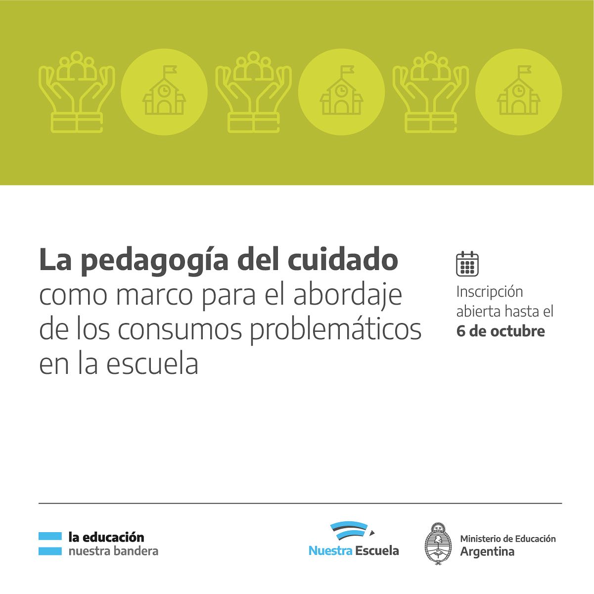 Curso para estudiantes de Formación Docente ¡Inscripciones abiertas de cursos para estudiantes de formación docente! Podés inscribirte hasta el 6 de octubre. ¿Cómo es la cursada? Virtual Duración: 5 semanas Carga horaria total: 25 hs La cursada contará con tres encuentros virtuales sincrónicos y clases asincrónicas. La propuesta es gratuita y se inscribe en elSigue leyendo «LA PEDAGOGÍA DEL CUIDADO COMO MARCO PARA EL ABORDAJE DE LOS CONSUMOS PROBLEMATICOS EN LA ESCUELA»