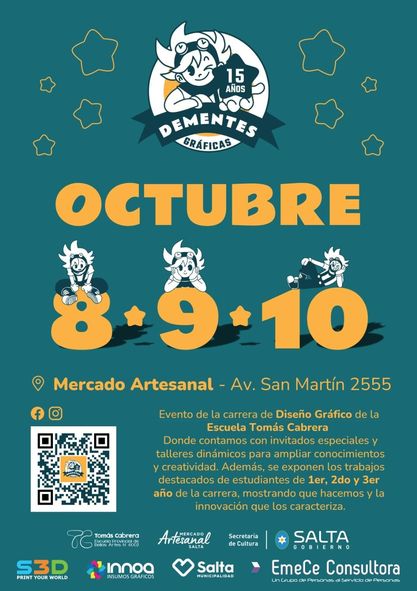 El evento, que reúne a diseñadores y creativos de todo el país, se realizará hasta el 10 de octubre, con talleres, disertaciones, exposiciones, feria de emprendedores y actividades recreativas. Entradas a la venta. Con el apoyo del Mercado Artesanal de Salta y organizado por la Escuela Provincial de Bellas Artes Tomás Cabrera N° 6002, estudiantes de tercerSigue leyendo «15° EDICIÓN DE DEMENTES GRÁFICAS»