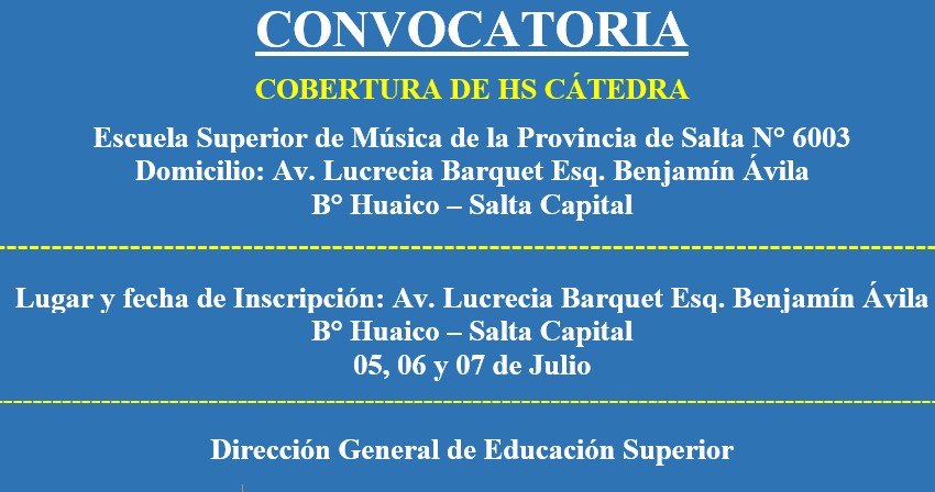 CONVOCATORIA PARA LA COBERTURA DE HS CATEDRA IES 6003 DE SALTA CAPITAL