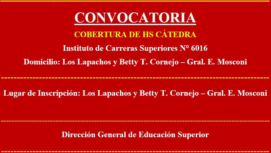 CONVOCATORIA PARA LA COBERTURA DE HS CÁTEDRA IES 6016 DE GRAL. ENRIQUE MOSCONI