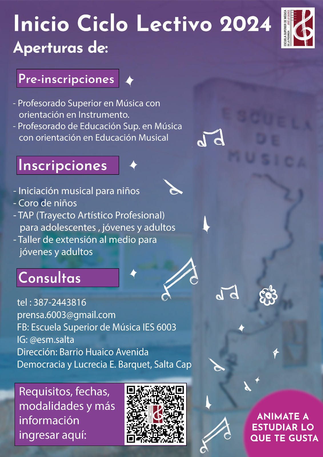 ABREN INSCRIPCIONES EN LA ESCUELA SUPERIOR DE MÚSICA DE LA PROVINCIA “JOSÉ LO GIUDICE”