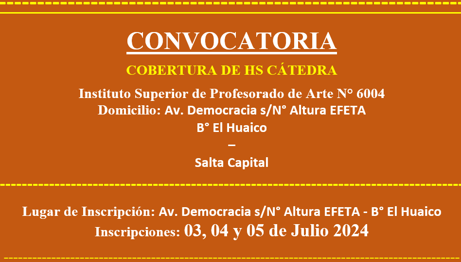 CONVOCATORIA PARA LA COBERTURA DE HS CÁTEDRA IES 6004 DE SALTA CAPITAL