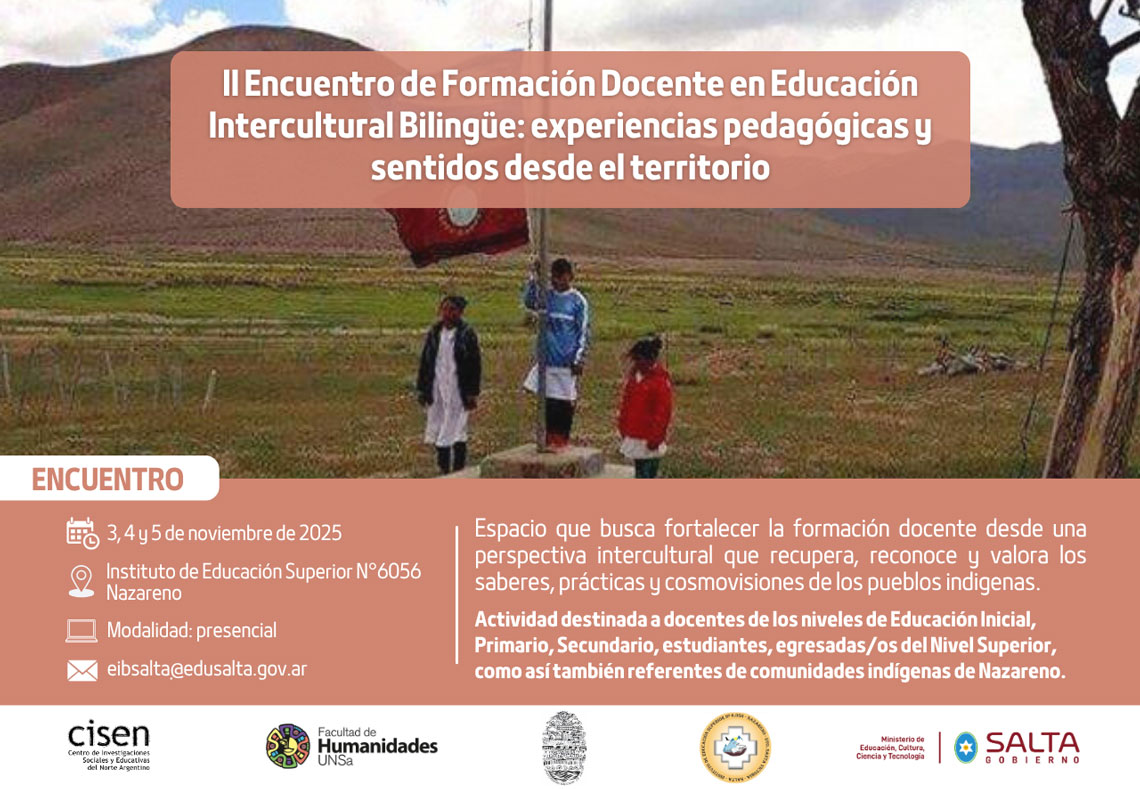 En el Instituto de Educación Superior N°6056, de Nazareno, se desarrolló el “II Encuentro de Formación Docente en Educación Intercultural Bilingüe: experiencias pedagógicas y sentidos desde el territorio”, con la participación de docentes de los Niveles Inicial, Primario y Secundario, estudiantes, egresados del Nivel Superior y referentes de comunidades indígenas del pueblo kolla. Durante tresSigue leyendo «II ENCUENTRO DE FORMACIÓN DOCENTE EN EIB EN NAZARENO»