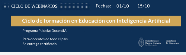 En el marco del Programa Argentino de Innovación de la Educación con Inteligencia Artificial (PaideIA), la Secretaría de Educación del Ministerio de Capital Humano, presenta el “Ciclo de Formación en Educación con Inteligencia Artificial”, que consta de dos propuestas formativas virtuales y gratuitas para docentes de todo el país. Se trata de dos webinarios en losSigue leyendo «ARRANCA EL CICLO DE FORMACIÓN EN EDUCACIÓN CON INTELIGENCIA ARTIFICIAL: YA ESTÁ ABIERTA LA INSCRIPCIÓN «