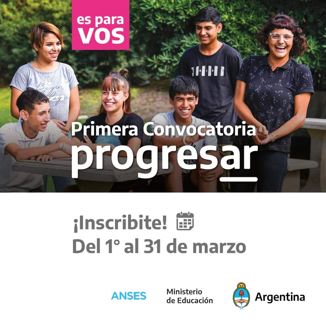 Benjamín Beltrán Continúa abierta la primera inscripción para Progresar 2022, una beca que acompaña tu recorrido educativo. f El programa tiene cuatro líneas: Progresar Obligatorio Para que jóvenes de 16 a 24 años finalicen su educación obligatoria Progresar Superior Para estudiantes de Institutos Superiores y Universidades Progresar Enfermería Para quienes estén cursando la carrera deSigue leyendo «PROGRESAR 2022»