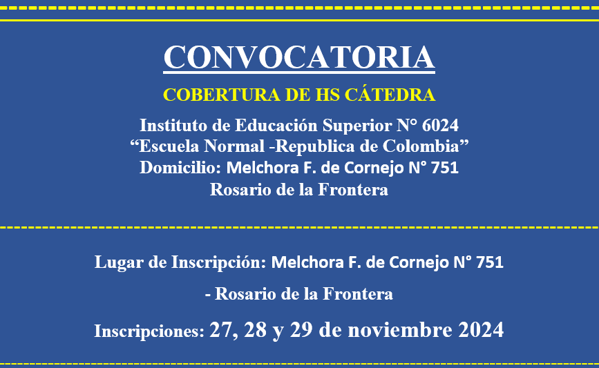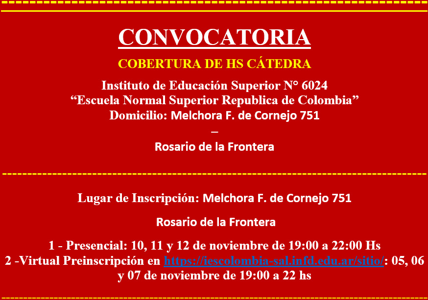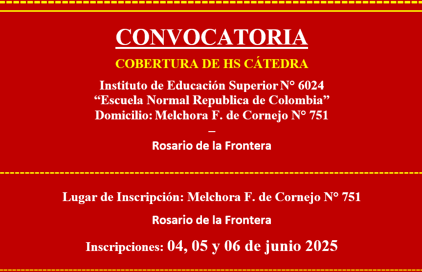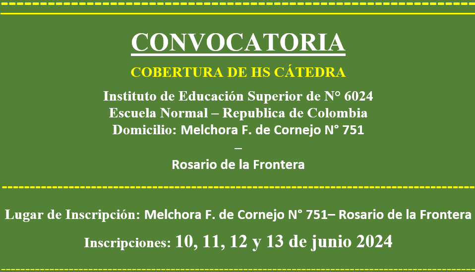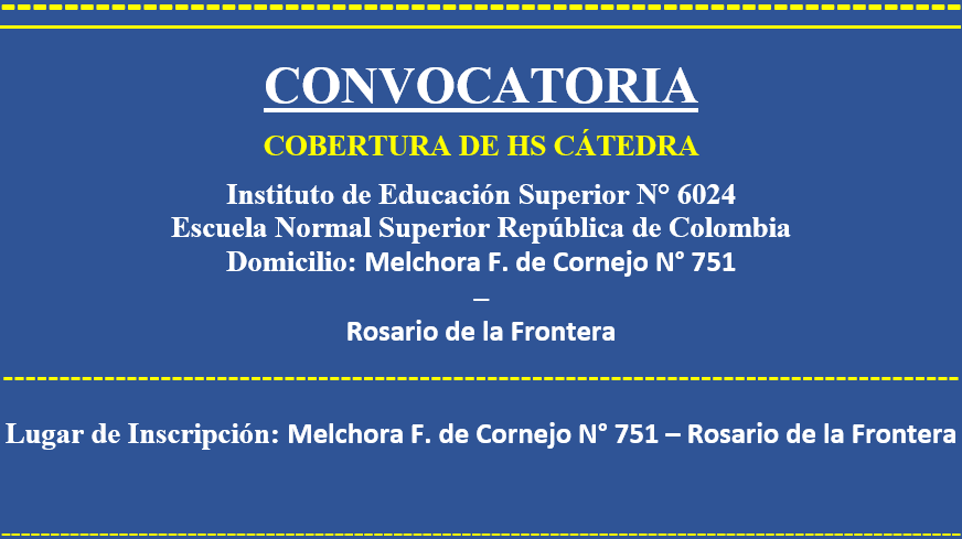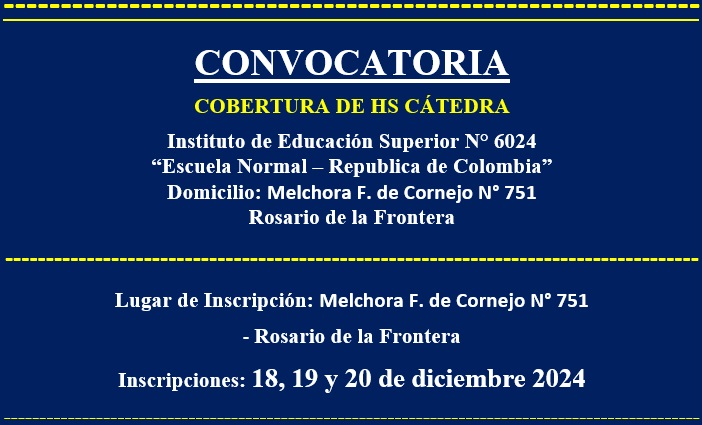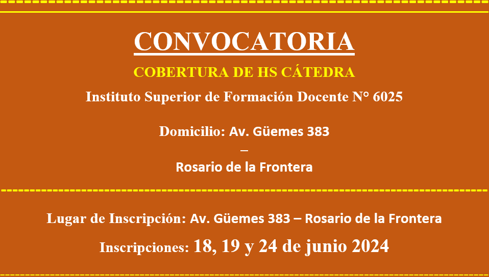 CONVOCATORIA PARA LA COBERTURA DE HS CÁTEDRA IES 6024 DE ROSARIO DE LA FRONTERA