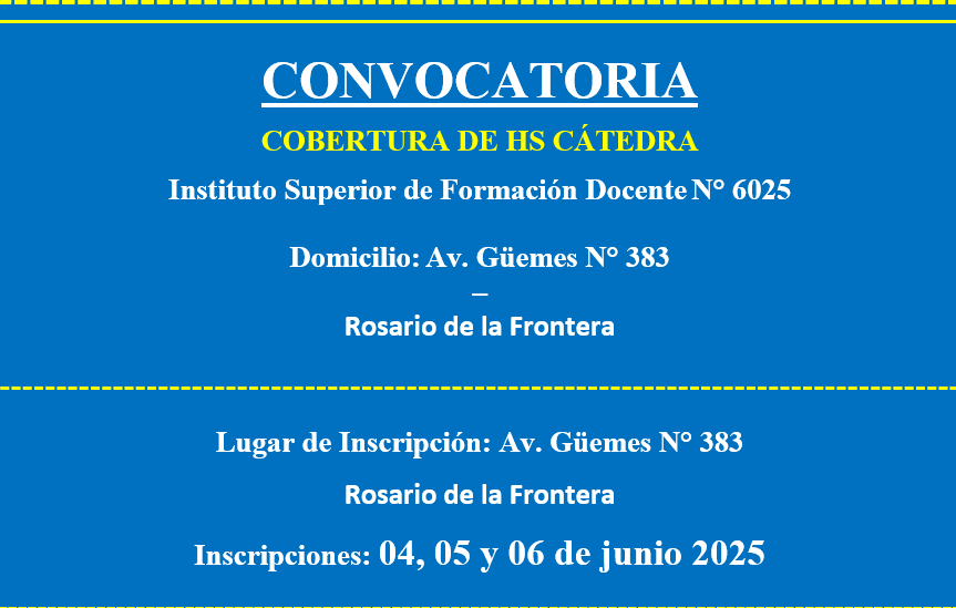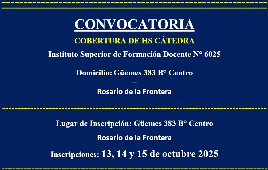 CONVOCATORIA PARA LA COBERTURA DE HS CÁTEDRA IES 6025 DE ROSARIO DE LA FRONTERA