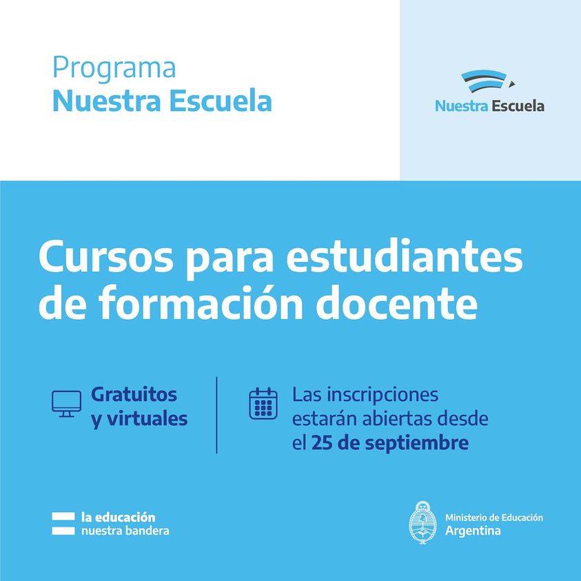 El lunes 25 de septiembre arranca la inscripción de nuevos cursos para estudiantes de formación docente. La inscripción estará abierta hasta el 6 de octubre. ¿Cuáles serán los cursos? ¿Cómo será la cursada? Virtual Duración: 5 semanas Carga horaria total: 25 hs Los cursos están destinados a estudiantes de formación docente. La propuesta es gratuitaSigue leyendo «CURSOS PARA ESTUDIANTES DE FORMACIÓN DOCENTE»