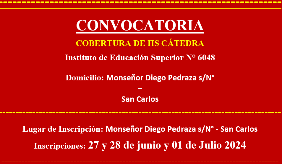CONVOCATORIA PARA LA COBERTURA DE HS CÁTEDRA IES 6048 DE SAN CARLOS